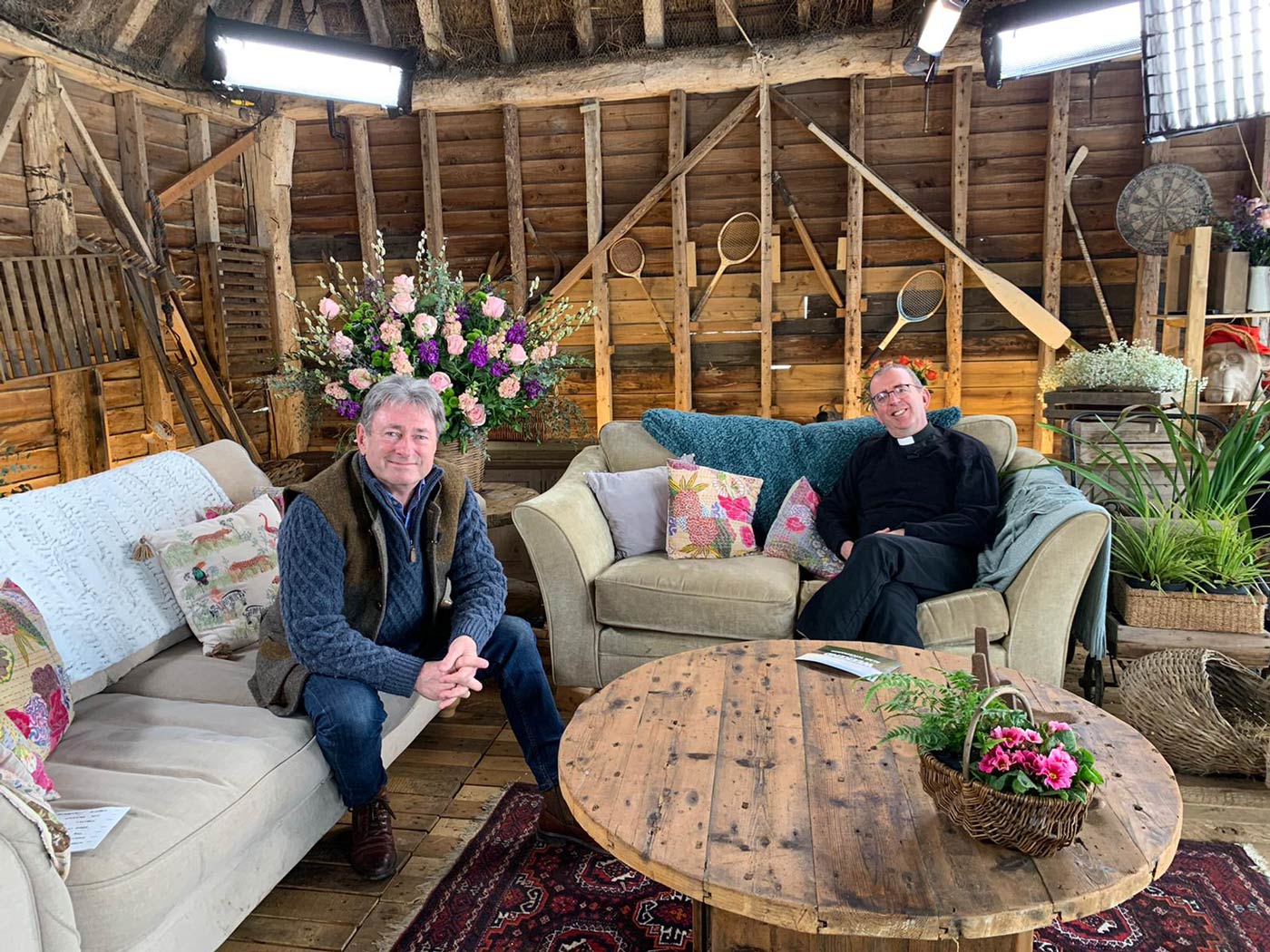 Rabbit Hole Detectives. Richard sitting on a sofa with Dr Cat Jarman and Charles Spencer